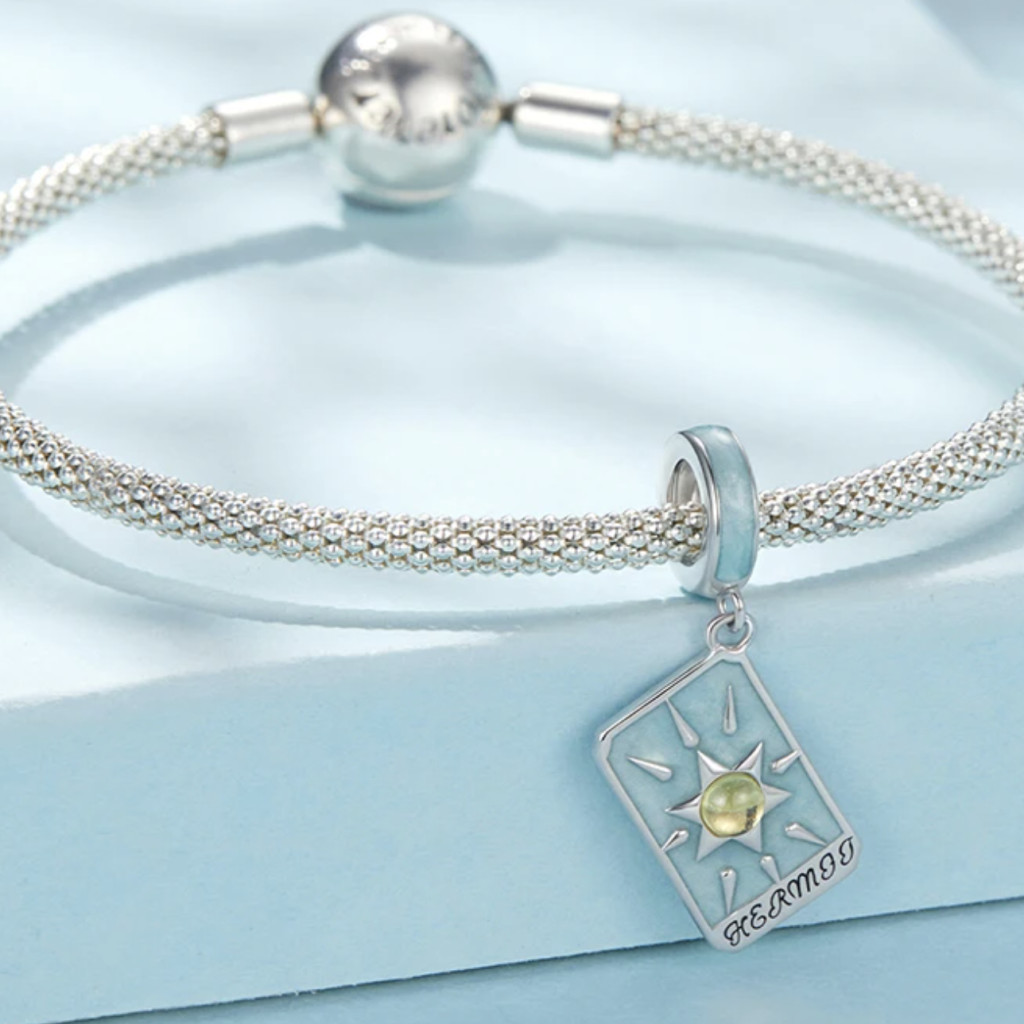 Ez az egyedi, 925 sterling ezüstből készült charm a tarot kártyák misztikus világát hozza el neked. A "Remete" motívum különleges szimbólum, amely a belső béke és önismeret útját jelképezi. A finoman megmunkált lámpás motívum arany fénye azt sugallja, hogy a válaszokat mindig önmagunkban találhatjuk meg, függetlenül a külvilág zajától.