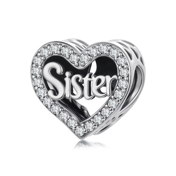 Ez a bájos ezüst charm tökéletes választás, ha különleges ajándékot keresel a szeretett testvéred számára. A "Sister" felirattal díszített charm gyönyörűen csillog a beépített cirkóniumkristályoknak köszönhetően, melyek finom eleganciát kölcsönöznek neki. A 925 sterling ezüstből készült darab eleganciáját az oxidált felület fokozza, ami időtálló szépséget biztosít. Könnyedén fűzheted karkötőre vagy nyakláncra, így biztosan a mindennapi megjelenés egyik kedvenc kiegészítője lesz. Lepd meg vele testvéredet, és fejezd ki vele az iránti szereteted és összetartozásotok különleges kötelékét.