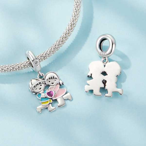 Ez a bájos charm tökéletesen megtestesíti a gyermeki ártatlanságot és örömöt. 925 sterling ezüstből készült, így nemcsak tartós, de elegáns kiegészítője is lesz bármely karkötőnek vagy nyakláncnak. A cirkóniumkristályok csillogása és a színes zománcozás frissessége különleges ragyogást kölcsönöz a mindennapoknak. Kompakt méretének köszönhetően (2.5 × 1.4 cm) diszkréten illeszkedik ékszereid közé, mégis feltűnő és figyelemfelkeltő. Ideális ajándék lehet a család fiatalabb tagjai számára, vagy bárkinek, aki szeretné megőrizni a gyermekkor varázsát. Ne habozz, lepjd meg szeretteidet ezzel a varázslatos darabbal!