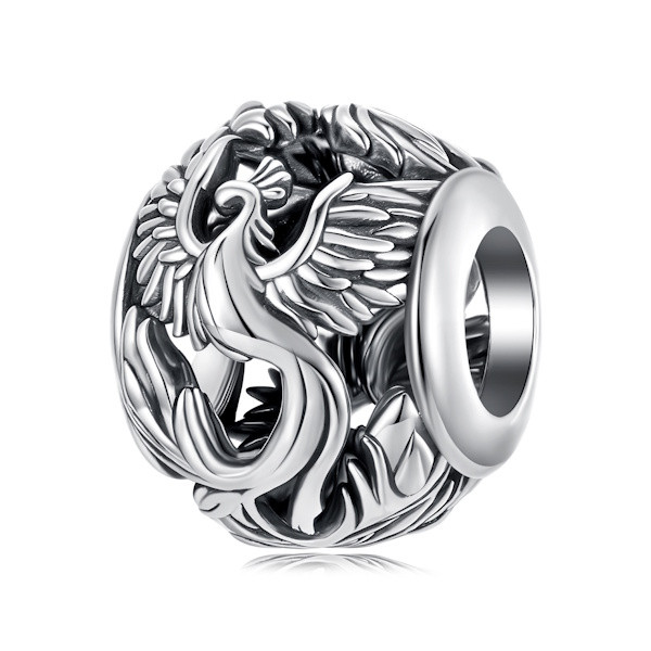 Emeld ki egyediségünket ezzel az elegáns főnixmadár ezüstcharmlal, amely minden ékszergyűjtemény különleges darabja lehet. A 925 sterling ezüstből készült charm finom oxidált felületével és részletgazdag kidolgozásával ragadja meg a tekintetet. Kompakt mérete, 1.1 × 0.9 cm, valamint 0.45 cm-es nyílása révén könnyedén illeszthető kedvenc karkötődre vagy nyakláncodra.