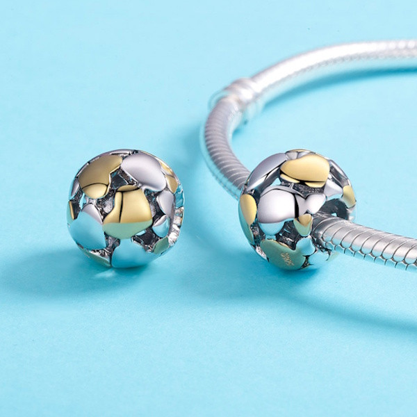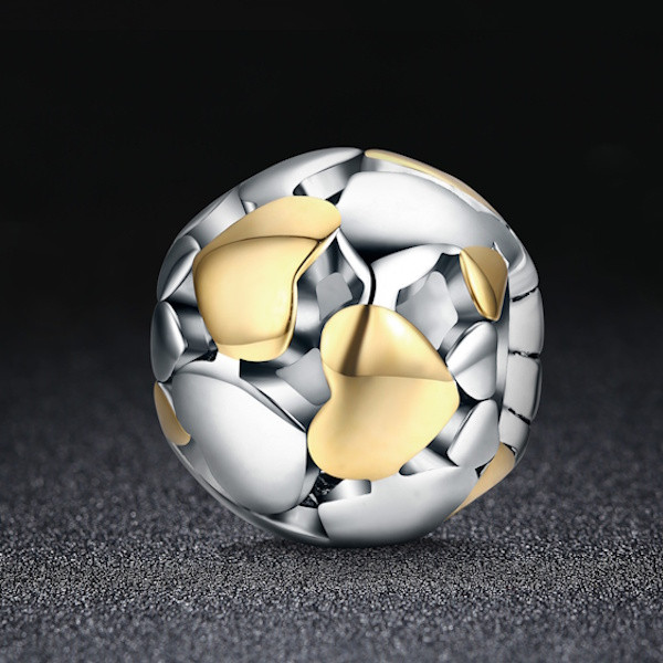 Az ezüst charm szívekkel a tökéletes kiegészítő, amely eleganciát és bájt kölcsönöz minden ékszerkollekciónak. A 925 sterling ezüstből készült charm finom aranyozással van díszítve, ami különleges ragyogást kölcsönöz neki. Könnyedén felhelyezhető karkötőre vagy nyakláncra, így változatosan viselheted, hogy mindig a stílusodhoz igazodjon. Az 1,95 grammos súlyának köszönhetően szinte észrevétlenül simul bármely ékszeredhez. Ajándékozásra is kiváló választás, hiszen a szív motívum az örök szeretet szimbóluma, amely különlegessé teszi a meglepetést szeretteid számára. Vásárold meg most, és emeld ki megjelenésed ezzel az időtálló darabbal!