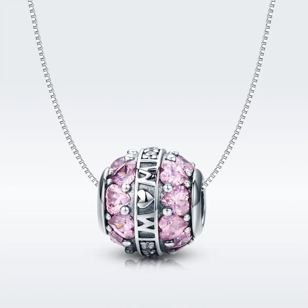 Fedezd fel az érzelmek világát ezzel a gyönyörű, 925 sterling ezüstből készült charm-al, amely az édesanyákat ünnepli. Az „MOM” feliratú darab rózsaszín cirkóniumkristályokkal van díszítve, amelyek finom csillogást kölcsönöznek neki. Az oxidált ezüst kialakítás elegáns megjelenést biztosít, miközben kiemeli a részleteket.
