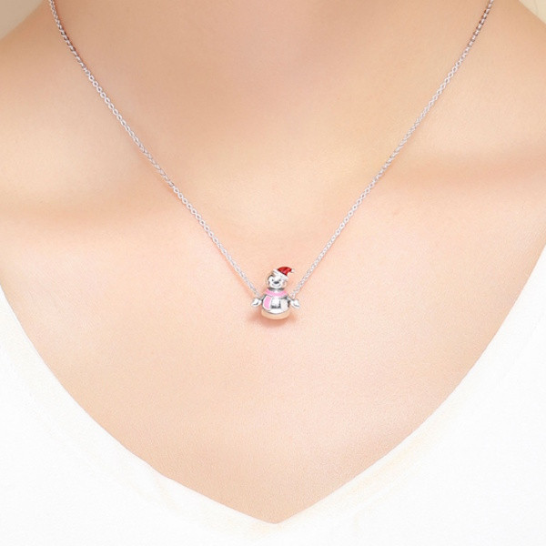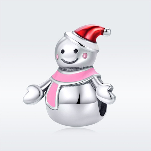 Ezüst charm, hóember piros sapkával