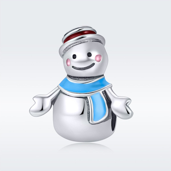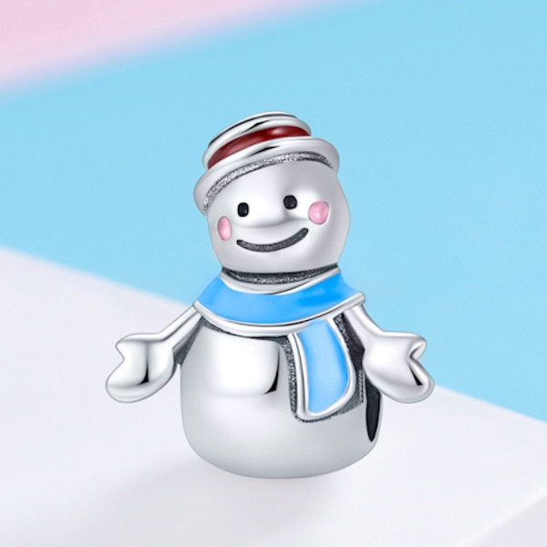 Ezüst charm, hóember kék sállal