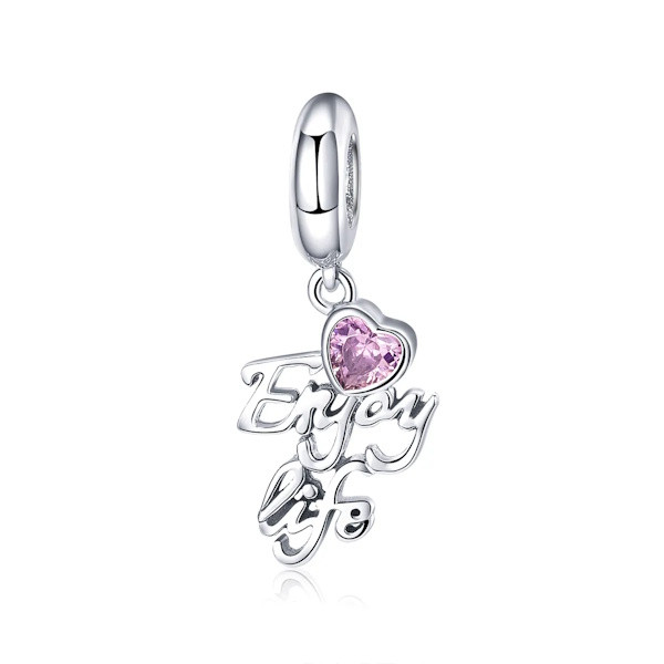 Stílusos és elegáns 925 sterling ezüst charm, amely tökéletes kiegészítője lehet bármely karkötőnek vagy nyakláncnak. A 925 sterling ezüstből készült charmot cirkóniumkristályok díszítik, amelyek ragyogó fényt kölcsönöznek neki. A charm közepén egy gyönyörű szív motívum található, amely az univerzális szeretet és összetartozás jelképét hordozza. A charmra gravírozott „Enjoy life” felirat emlékeztet arra, hogy minden napot érdemes megélni a maga teljességében.
