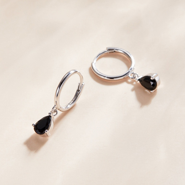 Ezüst fülbevaló csepp alakú kristállyal, fekete