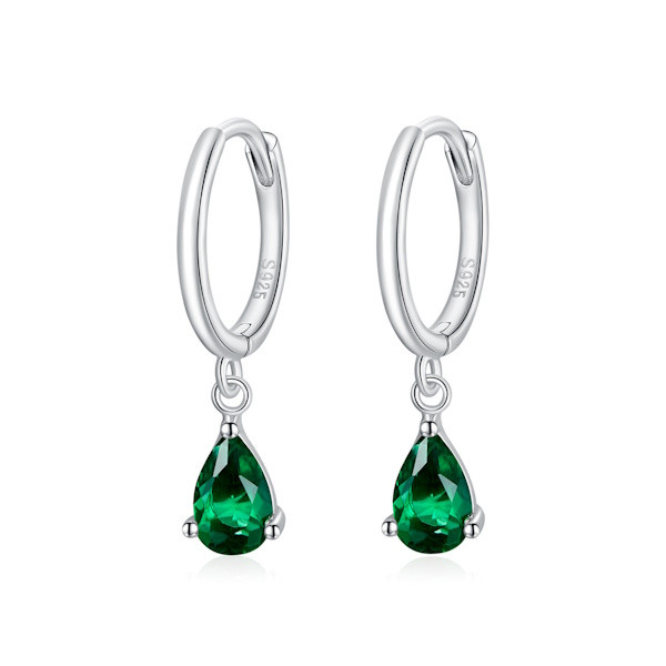 Ezüst fülbevaló csepp alakú kristállyal, zöld