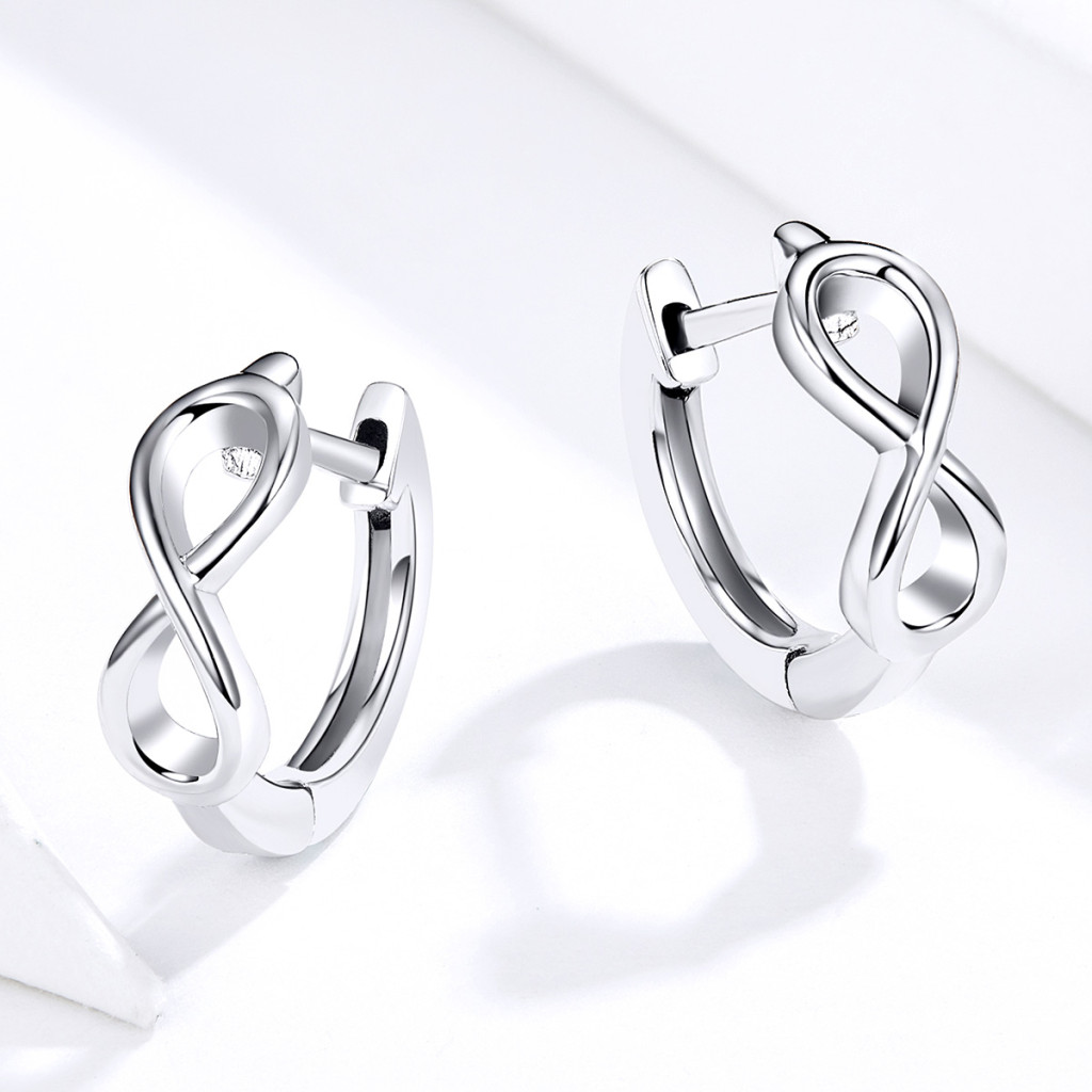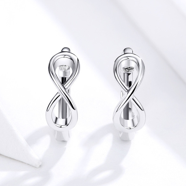 Fedezd fel az elegancia és az örökkévalóság találkozását ezzel a gyönyörű ezüst fülbevalóval, amely a végtelen jelével díszített. Kiváló minőségű 925 sterling ezüstből készült, és platinabevonattal rendelkezik, így nemcsak elegáns, hanem tartós is. A végtelen jel az időtlen szeretetet és a végtelen lehetőségeket szimbolizálja, tökéletes választás bármilyen alkalomra.