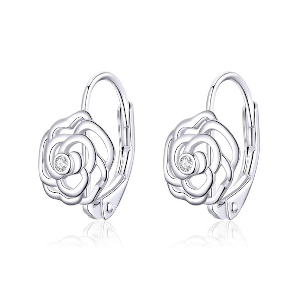 Ezüst fülbevaló, rózsa