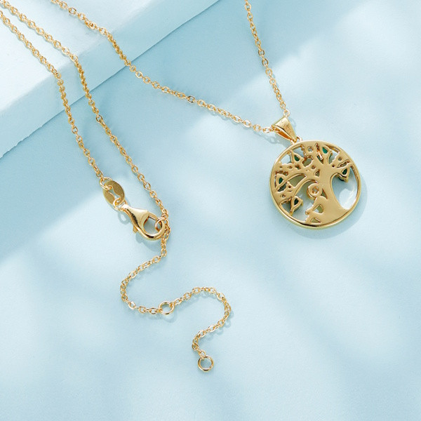 Engedd meg, hogy bemutassam neked ezt a lenyűgözően elegáns ezüst nyakláncot, amelynek központi eleme egy aranyszínű életfamedál. A 925 sterling ezüstből készült nyaklánc finoman ötvözi a klasszikus eleganciát és a modern stílust, kiegészítve csillogó cirkóniumkristályokkal. Az életfa motívum, amely már ősidők óta jelen van a kultúrákban, az örök életet, a növekedést és a kapcsolódást szimbolizálja. Egy ilyen jelentéssel bíró ékszer tökéletes választás lehet, ha különleges ajándékot keresel szeretteid számára. Az állítható lánchossz (38 + 30 + 30 cm) révén mindenki megtalálhatja a számára ideális viseletet. A nyaklánc könnyed, 4,2 grammos súlya biztosítja a kényelmet egész napra. Lepd meg magad vagy valaki mást ezzel a csodás ékszerrel, amely minden alkalomra tökéletes választás.