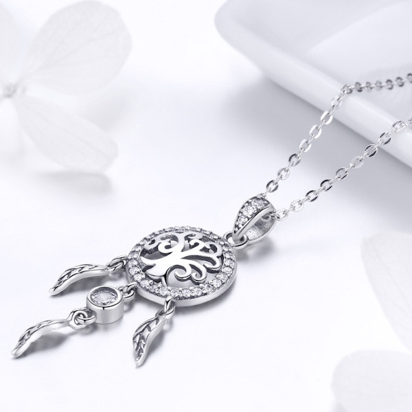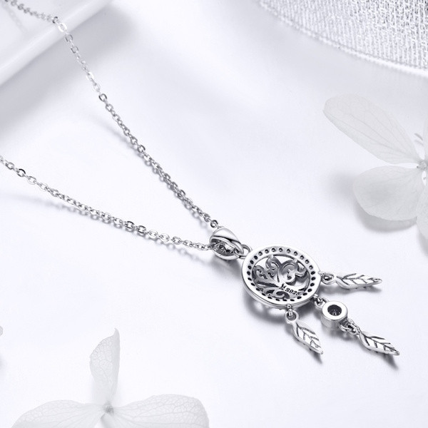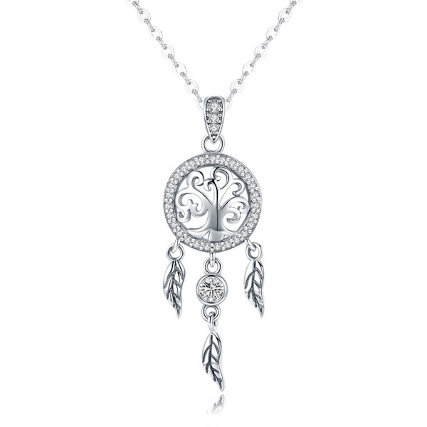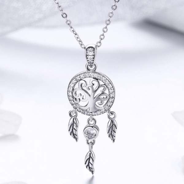 Fedezd fel az elegancia és a spirituális szimbolika tökéletes kombinációját ezzel a gyönyörű ezüst nyaklánccal, amely egy álomfogó medállal van díszítve. A 925 sterling ezüstből készült lánc finom oxidált felületet kapott, amely tökéletesen kiemeli a medál részleteit. A cirkóniumkristály csillogása vonzza a tekintetet, és különleges ragyogást kölcsönöz viselőjének.