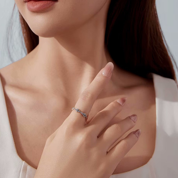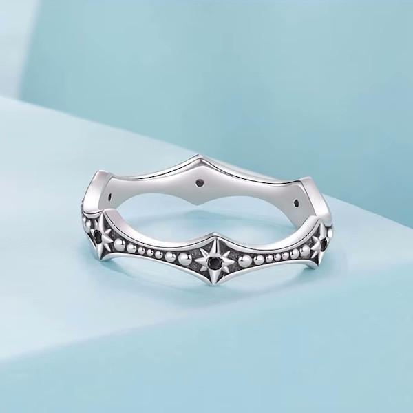Oxidált ezüstből készült női gyűrű vintage stílusban. Szélessége 0.15-0.4 cm, súlya 1.6 g.