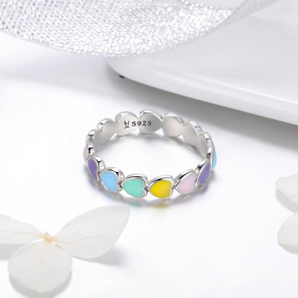 Ezüstgyűrű színes szívekkel, 8-as méret