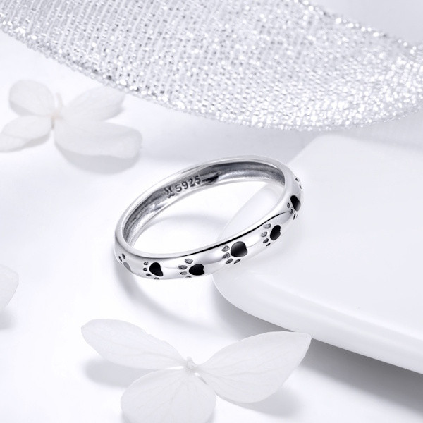 Oxidált ezüstből készült női gyűrű fekete zománcozással díszítve. Szélessége 0.3 cm, súlya 1.6 g.