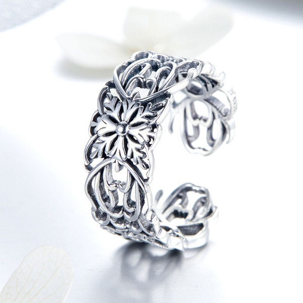 Ez a varázslatos, 925 sterling ezüstből készült gyűrű tökéletes kiegészítője lehet bármely ruhatárnak. A vintage stílusú ékszer finom eleganciát sugároz, miközben a gyönyörű virágmotívum romantikus hangulatot kölcsönöz. A virágok az élet megújulását, a szépséget és a természet csodáit szimbolizálják, így ez a gyűrű nemcsak divatos, de mélyebb jelentéssel is bír. Az állítható méretnek köszönhetően mindenki számára kényelmes viseletet biztosít. Ideális választás lehet ajándéknak is, hiszen a virágokkal díszített ékszerek mindig szeretetet és figyelmességet tükröznek. Lepd meg vele szeretteidet, vagy ajándékozd meg magad ezzel a káprázatos kiegészítővel, amely biztosan sokáig örömet fog okozni viselőjének.