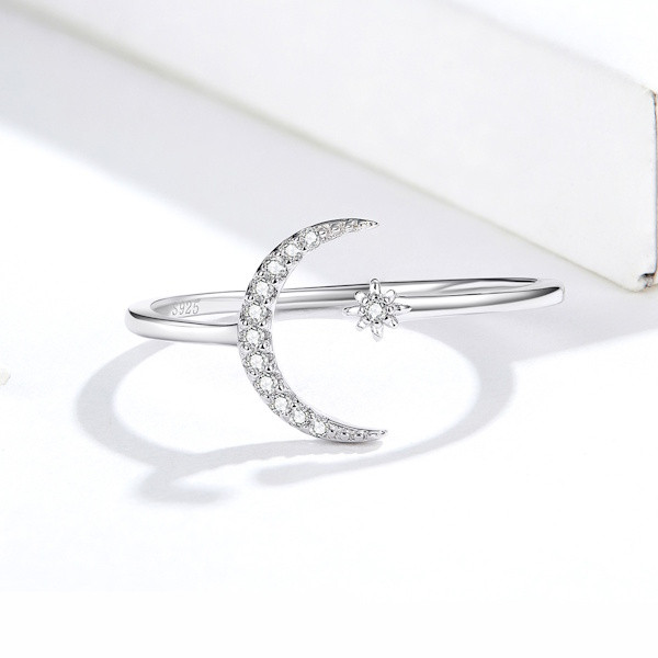 Ez a lenyűgöző ezüstgyűrű, a Hold és csillag motívumával, minden pillanatot varázslatossá tesz. A 925 sterling ezüst finomsága és a platinabevonat eleganciája páratlan csillogást biztosít. A gyűrű finom vonalai és légies megjelenése tökéletesen kiegészíti viselője stílusát. A Hold, mely az álmok és a misztikum szimbóluma, a csillagokkal együtt a reményt és a végtelenséget jelképezi. Ez a különleges motívum a harmónia és a belső béke üzenetét hordozza. Ideális ajándék lehet különleges alkalmakra, hiszen mindenki szívéhez közel állnak ezek az égi jelképek. Egy ilyen darab viselése nem csupán egyedi megjelenést kölcsönöz, hanem belső ragyogást is sugároz. Válaszd ezt a gyűrűt, ha szeretnéd meglepni szeretteidet, vagy egyszerűen csak saját magadat kényeztetnéd egy kis luxussal.