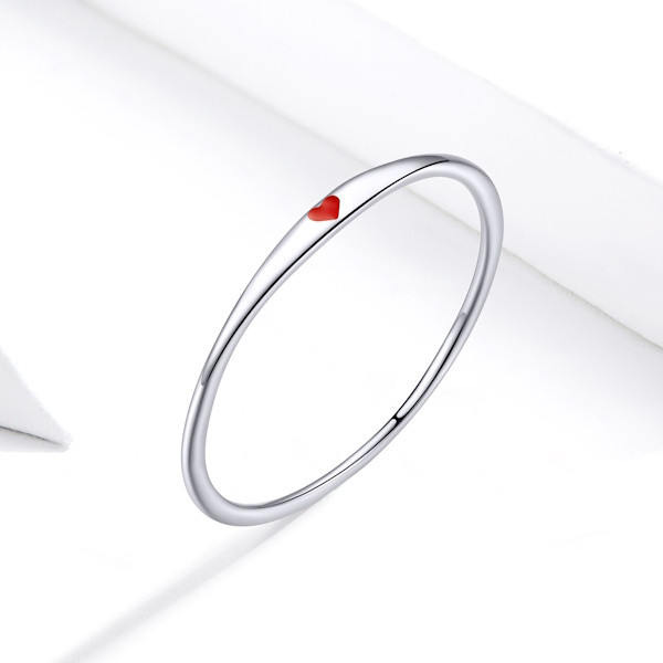 Ezüst eljegyzési gyűrű piros szívvel, 7-es méret