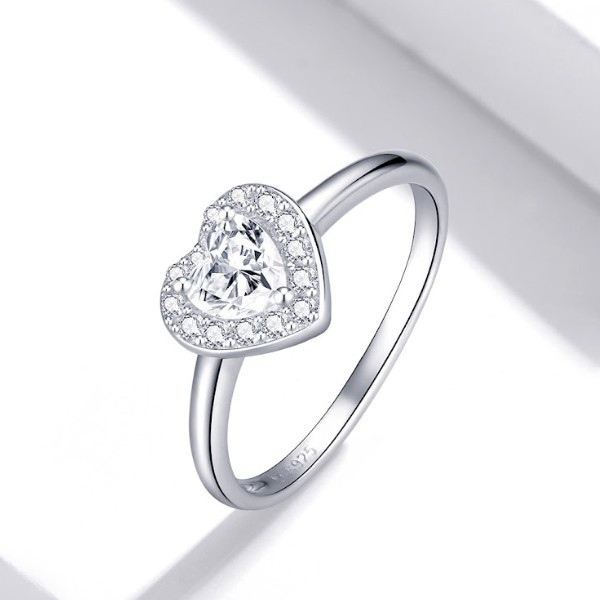 Ezüstgyűrű, kristályos szív, 7-es méret