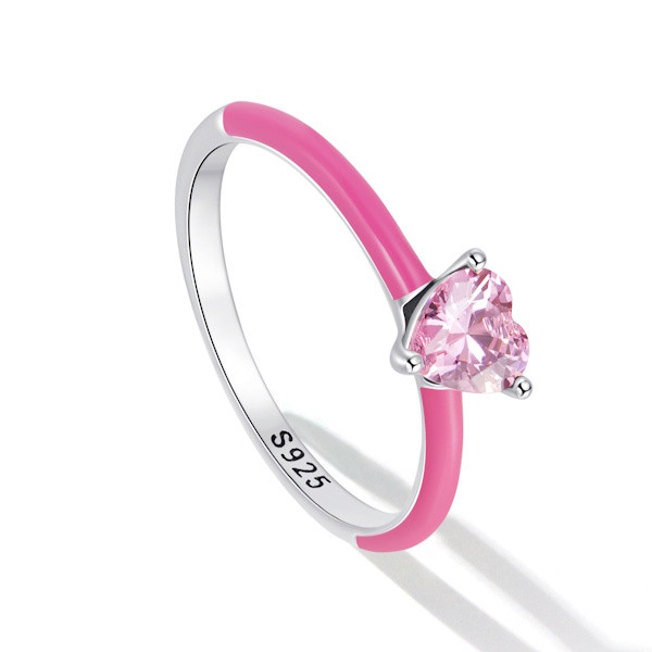 Ezüst női gyűrű, pink, 8-as méret