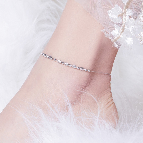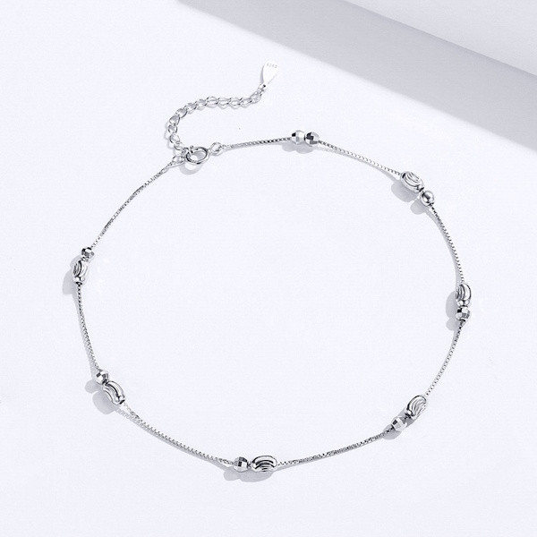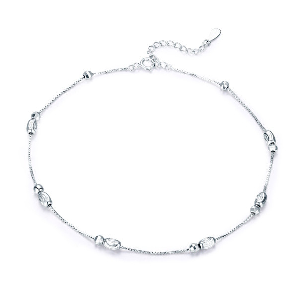 Ezüstből készült női bokalánc platinabevonattal. Hossza 26 cm, súlya 1.8 g.
