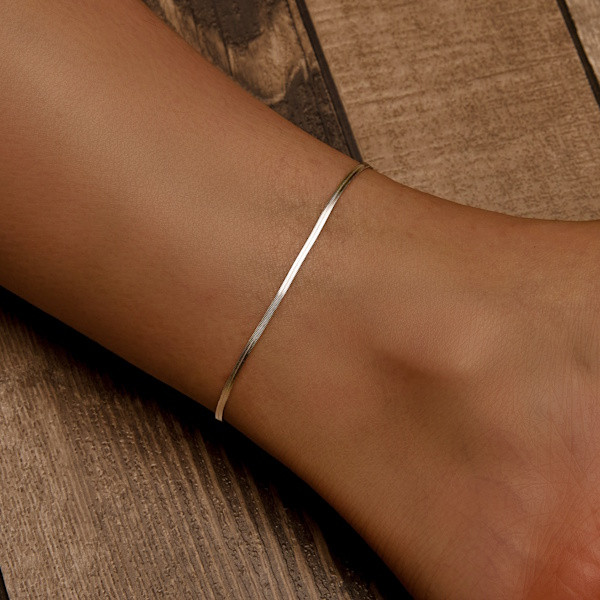 Ezüstből készült, laplánc típusú bokalánc. Hossza 25 cm, súlya 2.2 g.