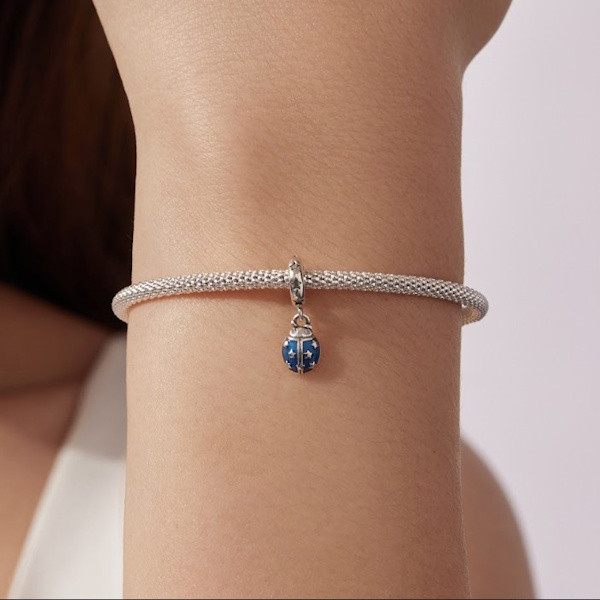 Ez a bájos 925 sterling ezüst charm igazi szerencsehozó amulett, amely minden pillanatot különlegessé varázsol. A 925 sterling ezüstből készült katicabogár alakú charm apró cirkóniumkristályokkal van díszítve, így ragyogóan csillog minden fényviszonyban. A katicabogár a szerencse és a védettség szimbóluma, amely számos kultúrában pozitív jelentéssel bír. Úgy tartják, hogy ha egy katica rád száll, az szerencsét és boldogságot hoz, ezért viselése különösen ajánlott a mindennapokban.